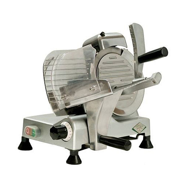 предназначен для нарезки мясных, колбасных изделий, сыра и других пищевых продуктов. Применяется в сфере торговли и гастрономии. Нарезаемый продукт кладется на лоток и закрепляется с помощью прижимного устройства. Слайсер обеспечивает быструю и точную нарезку ломтиков заданной толщины (регулируемая толщина резки 0-13 мм.), оснащен встроенной точилкой для ножа. Для безопасного использования слайсера дисковый нож помещен в защитный кожух. Конструкция машины обеспечивает легкое и плавное перемещение подающего лотка. Литое основание. Дисковый нож выполнены из нержавеющей стали. Энергосберегающий мотор с охлаждающим вентилятором, водостойкий выключатель обеспечивают установленные меры безопасности. Слайсер соответствует общим требованиям безопасности согласно ГОСТ 27570.0, ГОСТ 27570.53, ГОСТ 12.2.092.